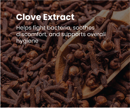 Clove Extract (for natural oral protection) A traditional Ayurvedic herb known for its antibacterial and anti-inflammatory properties, promoting cleaner teeth and fresher breath