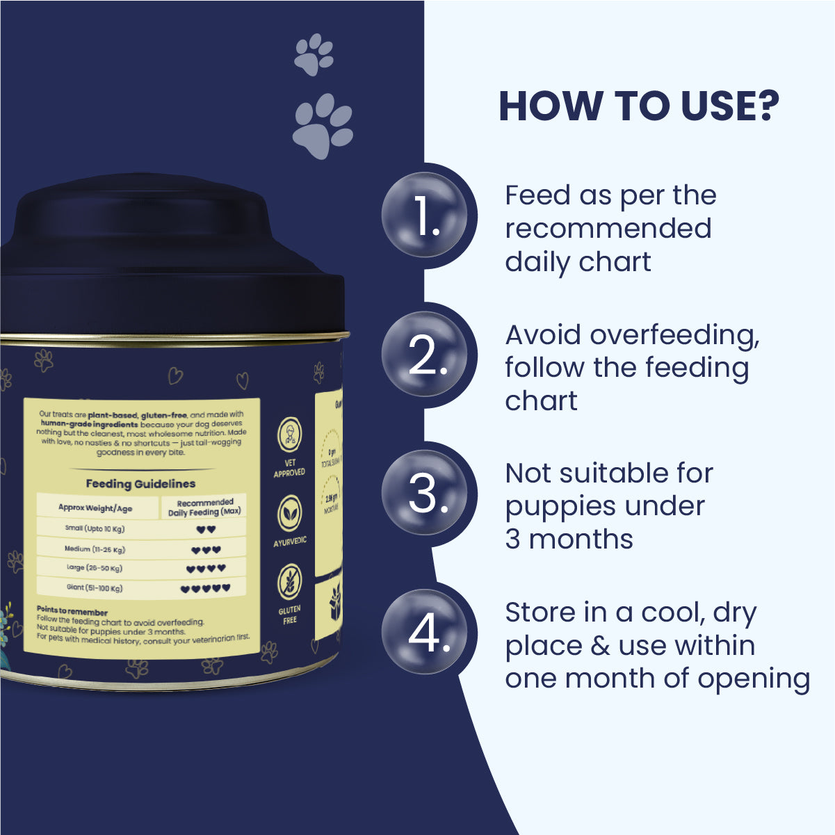 Feed as per the feeding guidelines based on your dog’s size and age.