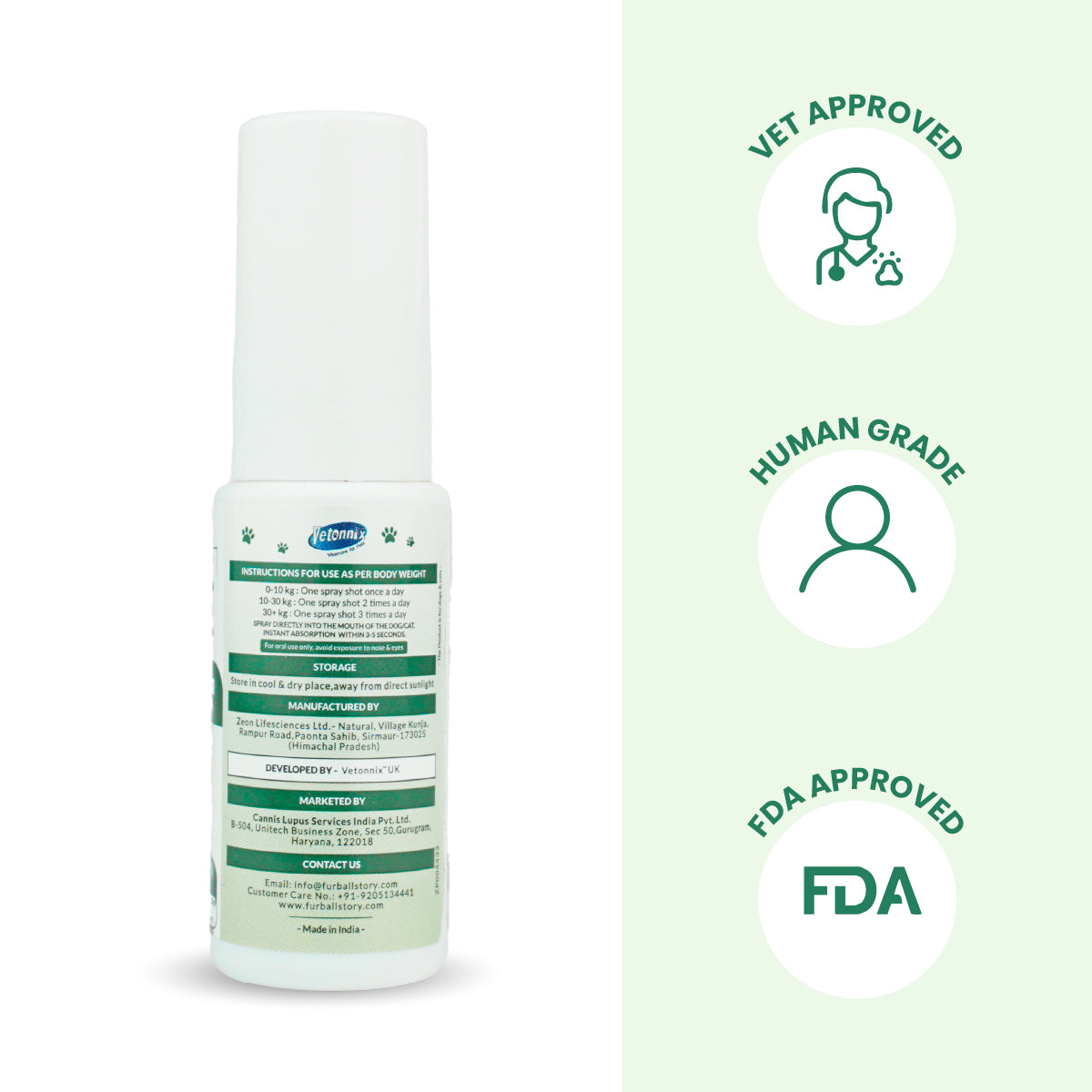 Spray directly into your dog’s mouth, aiming for the inner cheek or under the tongue.