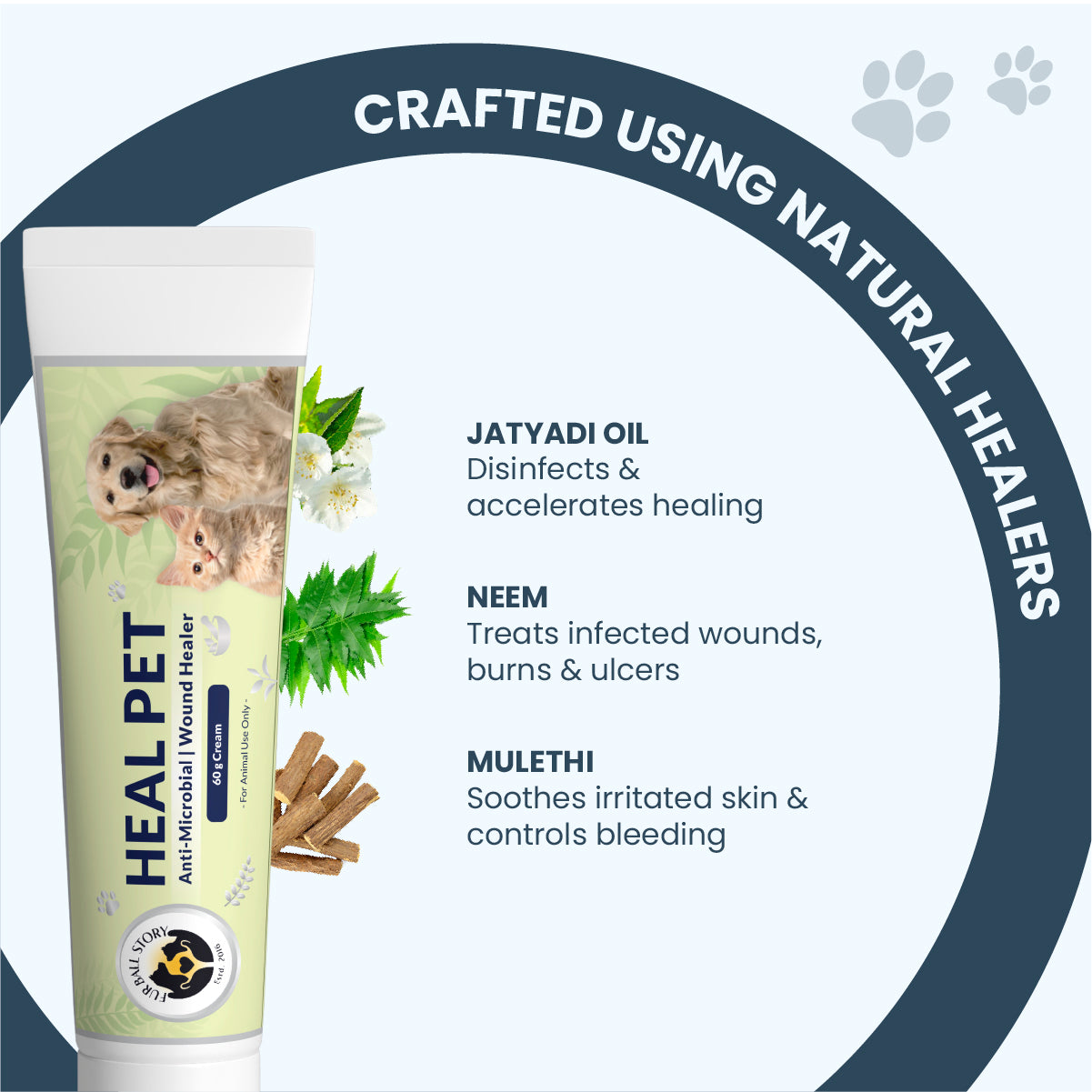 Heal Pet Cream helps soothe wounds, minor cuts, and skin irritations, promoting faster healing in dogs.