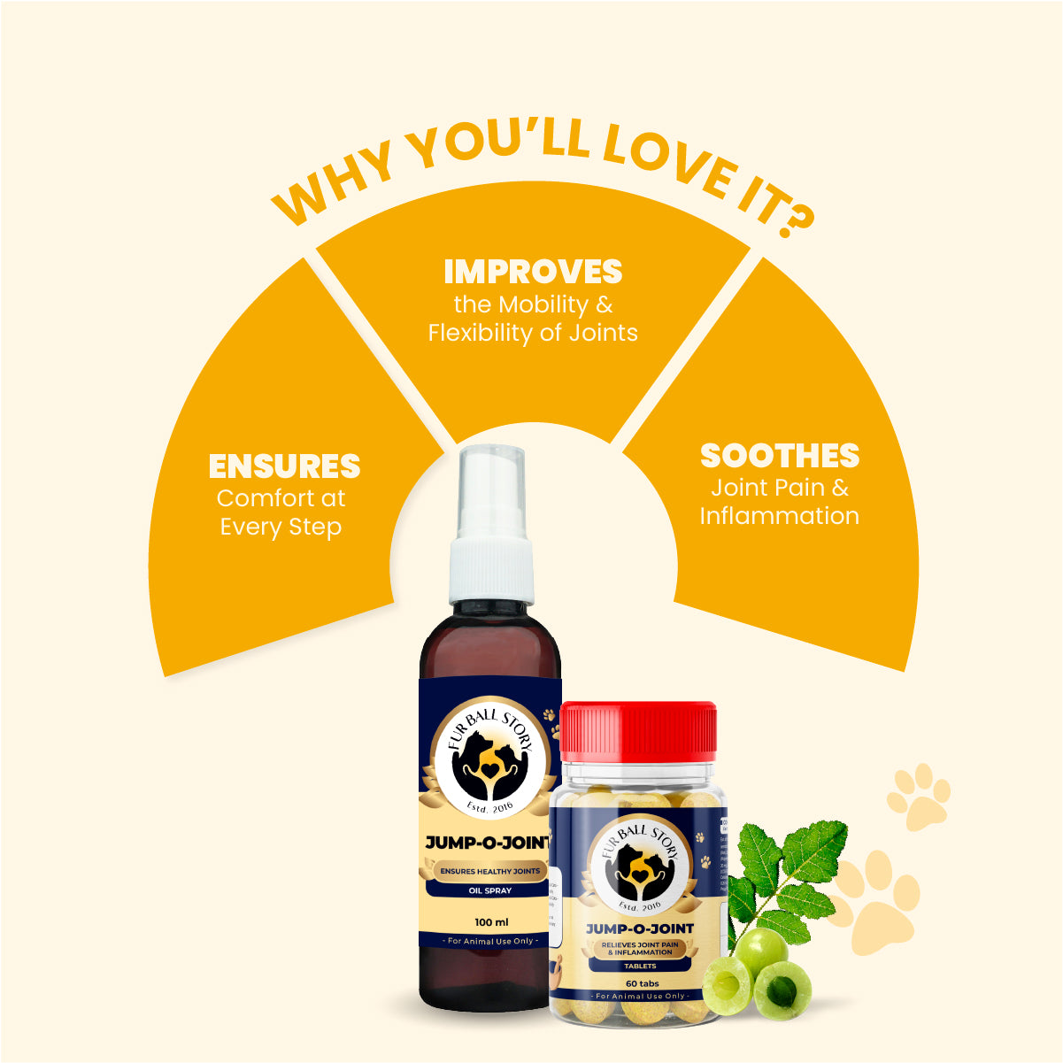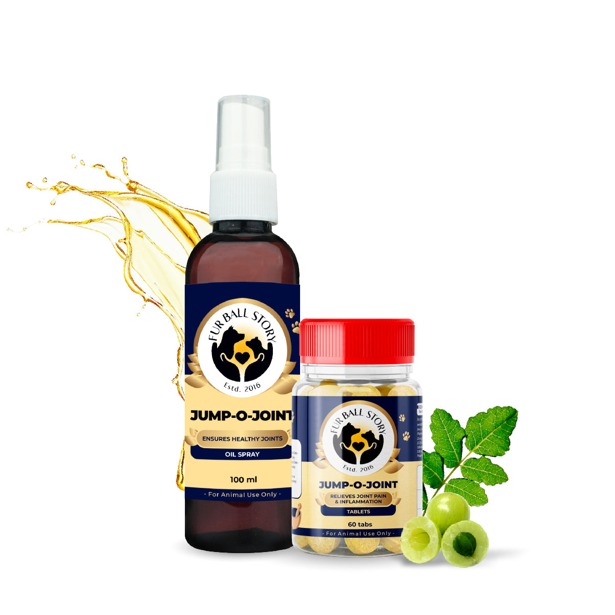 It includes Jump-O-Joint Oil and Jump-O-Joint Tablets for complete joint care.