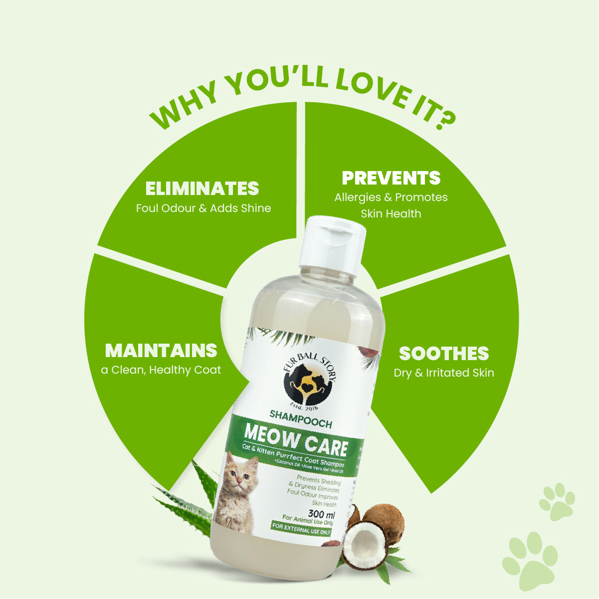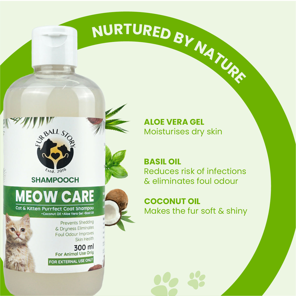 Shampooch Meow Care is a gentle cat shampoo that cleanses, nourishes, and maintains a healthy, shiny coat.