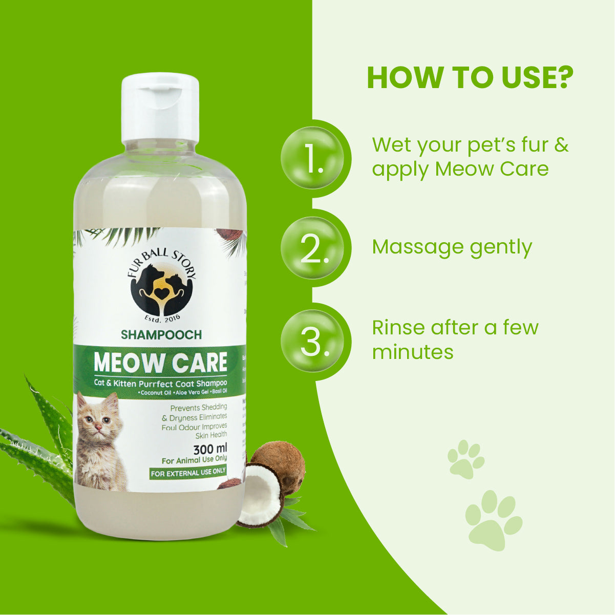 Use it once a week or once in 15 days, depending on your cat’s coat condition and activity level.