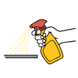 Spray directly on the surface, let it sit for a few minutes if needed, and wipe clean with a cloth.