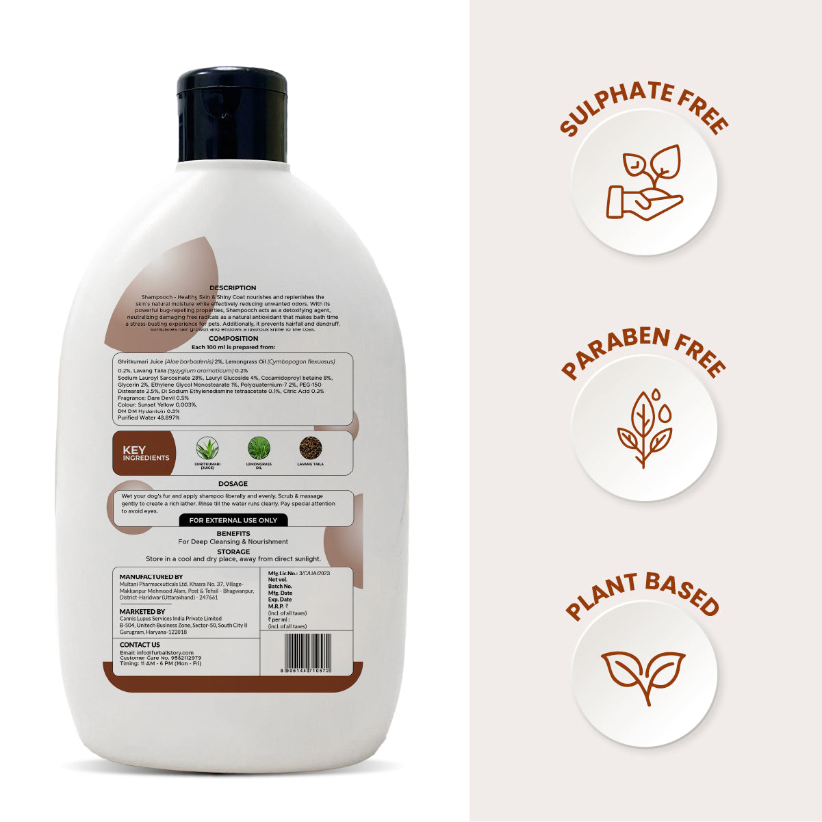 It is a gentle dog shampoo that cleanses, nourishes, and soothes the skin while keeping the coat healthy and shiny.