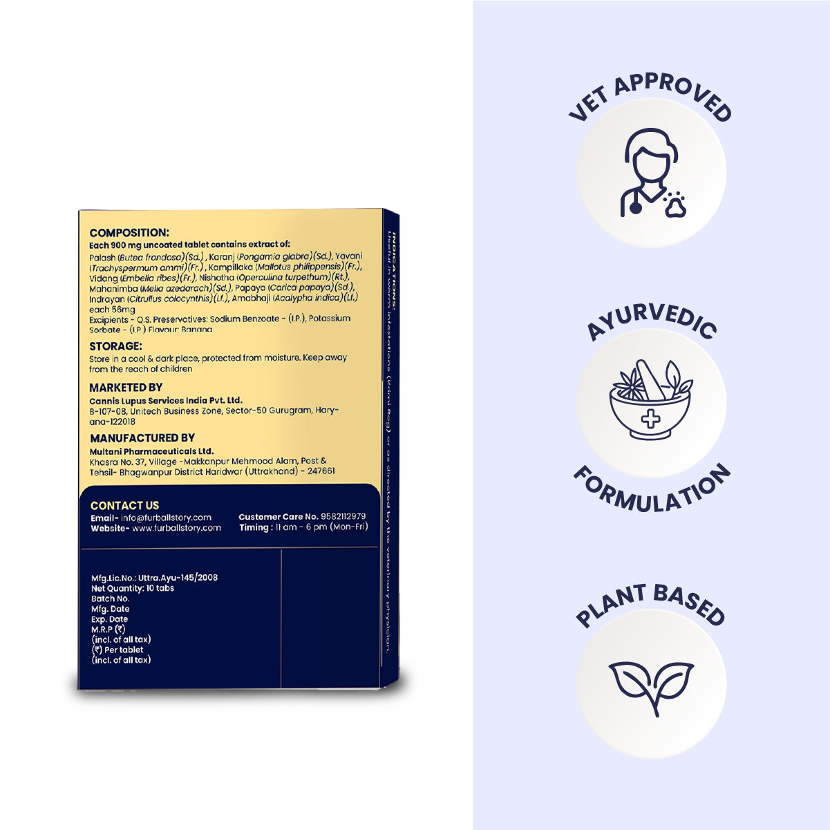 Worm Care is an Ayurvedic deworming formulation made with herbal ingredients such as Vidanga, Palash, and Kampillaka. Unlike chemical dewormers, it works gently through traditional anthelmintic and purgative actions, making it suitable for short, controlled deworming courses under veterinary guidance.